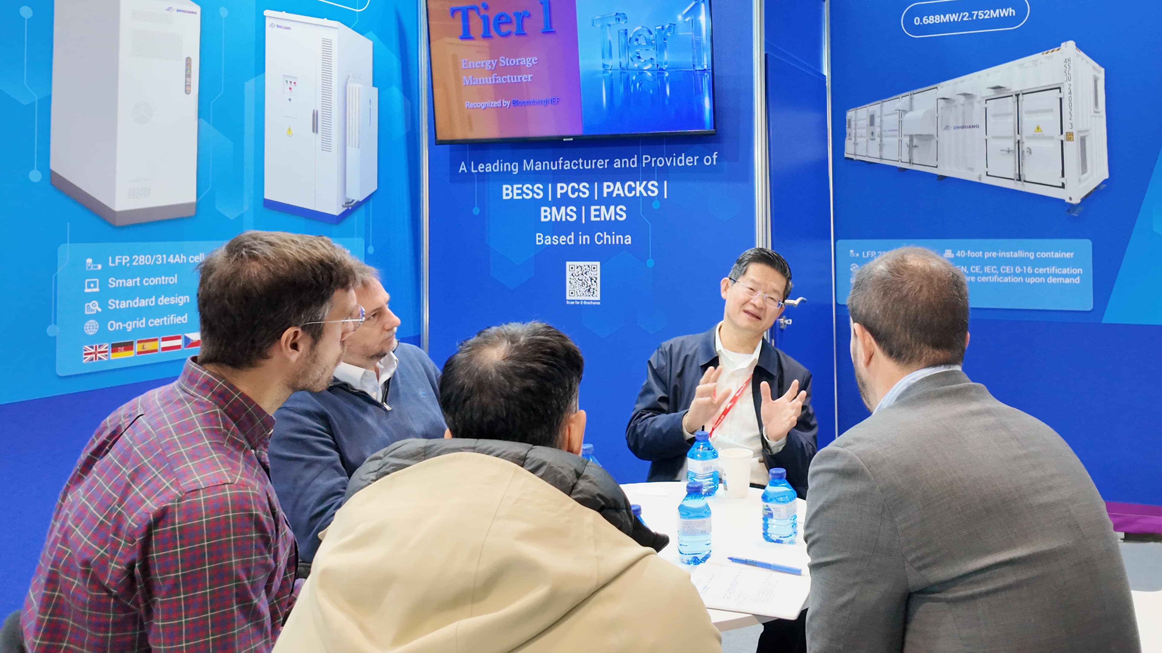 展臺現場吸引了來自西班牙本地及歐洲多國的專業觀眾前來參觀、咨詢與深入交流。多家全球知名能源企業、開發商及EPC承包商包括Elecnor、Emeren、Acciona Energía、?rsted 等受邀到訪,與智光電氣技術團隊就儲能系統設計、項目應用案例、并網適配性及未來合作機會展開深入探討,此次亮相不僅提升了智光電氣在歐洲儲能市場的品牌知名度,也為開拓區域合作奠定了堅實基礎。