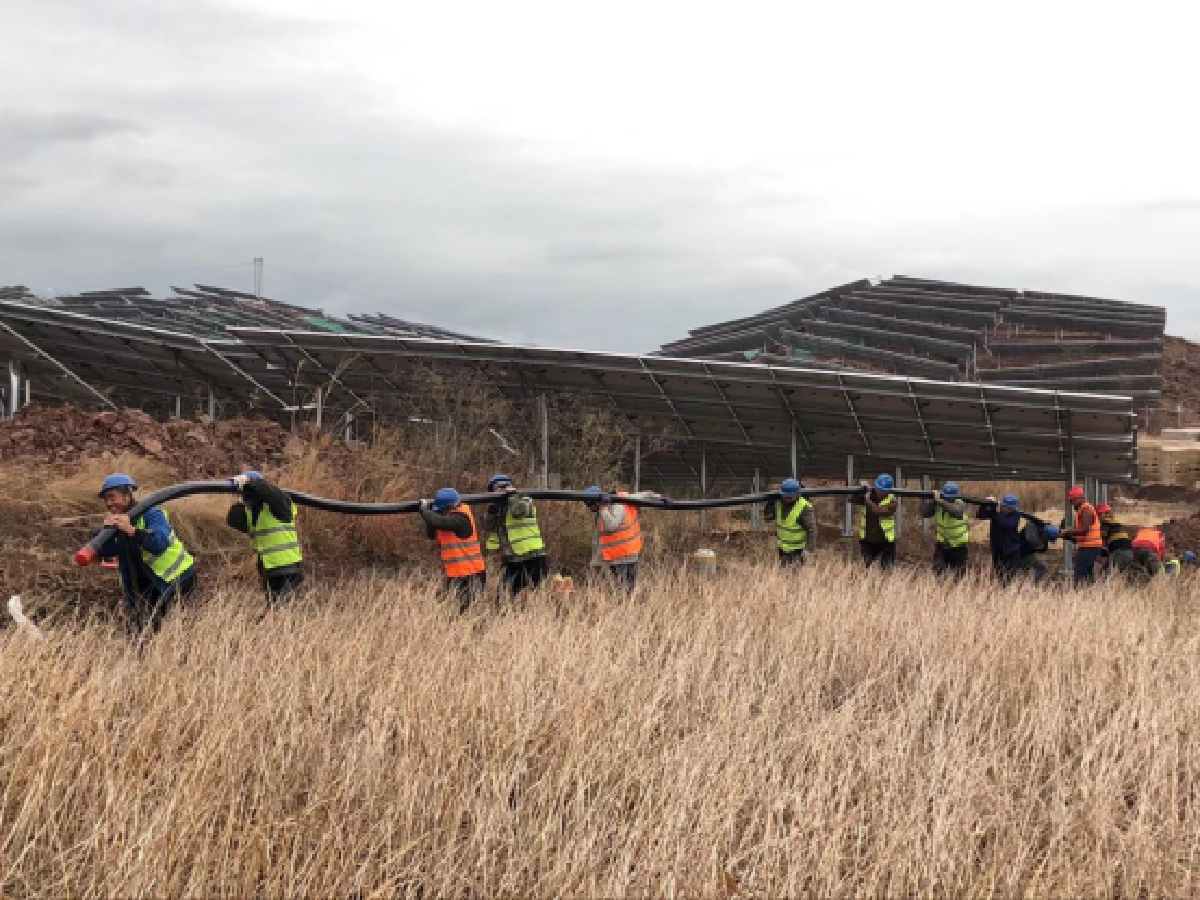 該項(xiàng)目工程量大,除了廣闊的光伏區(qū)外,還包括一座220千伏升壓站和1.8公里的外送線路兩項(xiàng)重大配套工程,并且有建設(shè)周期短的要求。智光用電投資接到中標(biāo)通知書后,急業(yè)主所急,迅速動員、嚴(yán)密部署,成立了以智光用電投資主要領(lǐng)導(dǎo)親自掛帥的項(xiàng)目協(xié)調(diào)小組和現(xiàn)場指揮部等組織機(jī)構(gòu),充分調(diào)動公司內(nèi)外部力量,集全員之力,分工合作,全面打通了從土地租賃、青苗賠償,設(shè)計(jì)、采購、監(jiān)造,現(xiàn)場安裝、質(zhì)安管理和外部協(xié)調(diào)等各項(xiàng)工作環(huán)節(jié)。